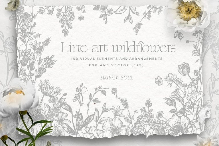 Line Art Wildflowers Clipart